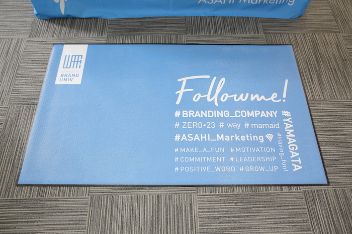 受付の足元には、やまがたブランド大学のロゴが入ったマットを用意。